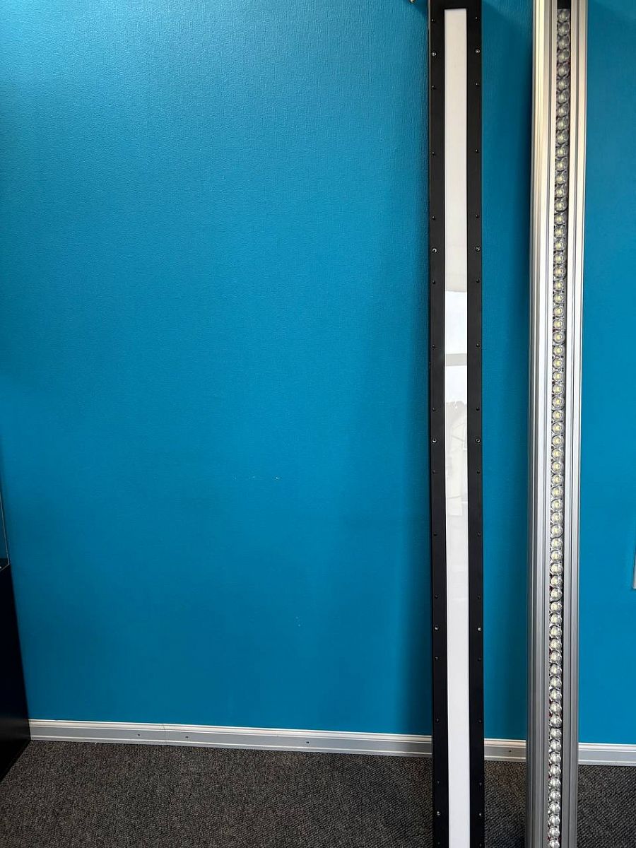 Изготовлен комплект подсветок для поиска дефектов шпона. В комплект входят фронтальная и фоновая подсветки длиной около 2 м. Светимость фоновой подсветки - более 10000 лк, фронтальная подсветка на расстоянии 0.15 м создаёт освещённость выше 200 000 лк.